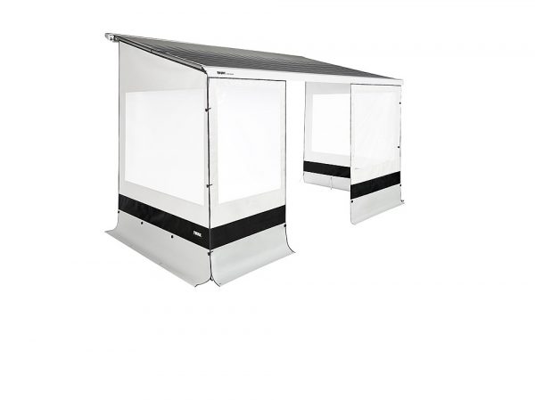 Les parois latérales Rain Blocker G2, adaptées à tous les auvents Thule Omnistor, offrent une protection optimale contre le vent et la pluie. L’assemblage des parois latérales sur l’auvent peut se faire rapidement et facilement. Les parois latérales sont enfoncées dans un rail de tuyauterie intégré dans la tige de tension en aluminium fournie. Ces tiges de tension en aluminium en deux parties nouvellement développées sont utilisées entre le coffre de l’auvent et le profil avant.