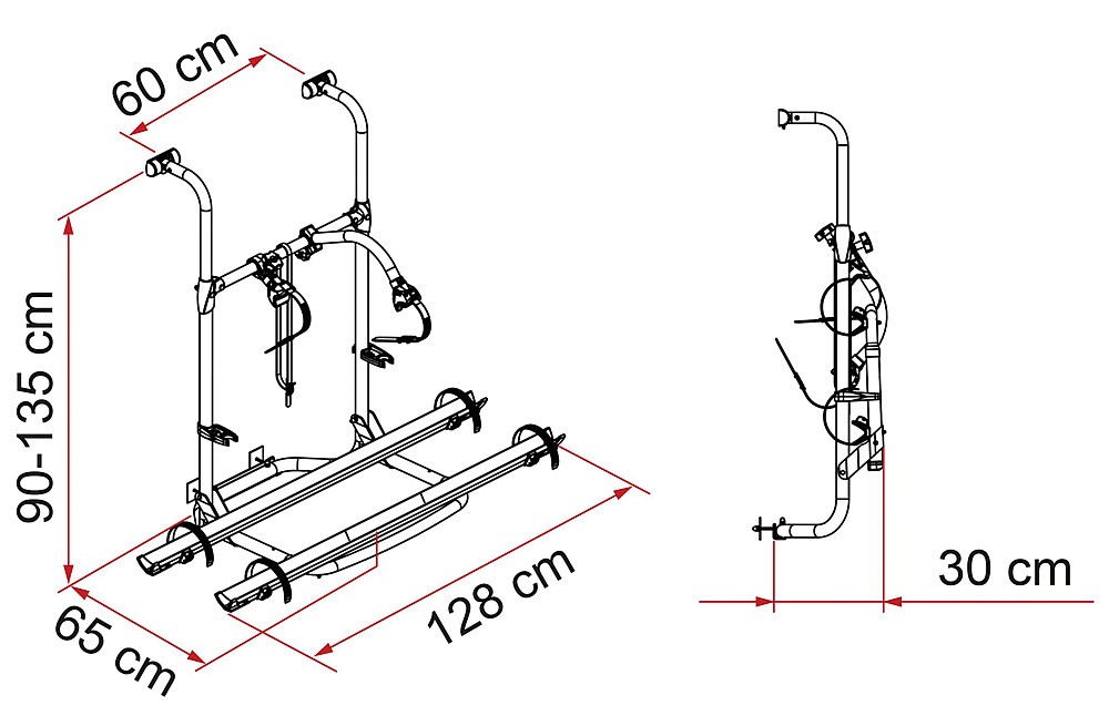 Développé pour les camping-cars Hymer et Dethleffs avec un adaptateur pour les supports supérieurs, déjà installés en standard sur les camping-cars à partir de 2002.