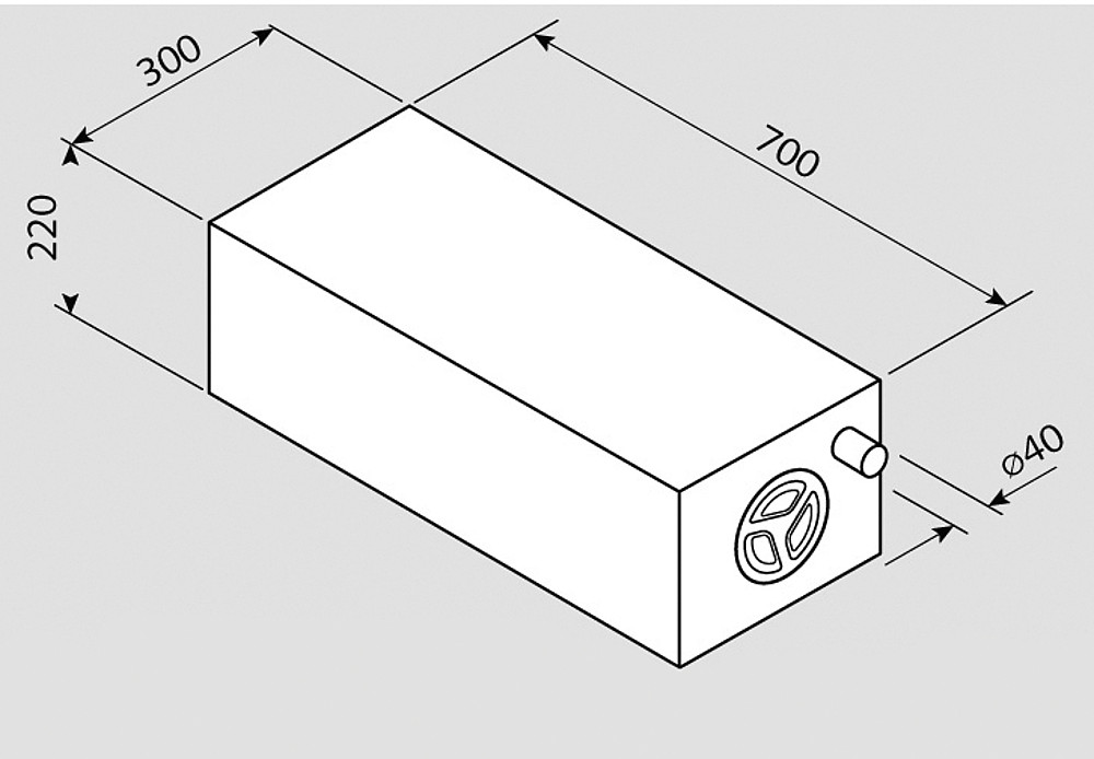 Réservoir d’eau avec ouverture de nettoyage ø 12 cm et buse d’entrée ø 4 cm. Les buses sont fermées à la livraison et peuvent être ouvertes si nécessaire.
