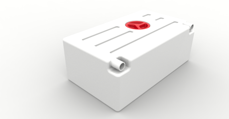 Réservoir d’eau avec ouverture de nettoyage ø 12 cm. Intégré dans le réservoir (sans protubérances) se trouvent 2 buses de remplissage de 4 cm de diamètre. Les buses sont fermées à la livraison et peuvent être ouvertes si nécessaire.