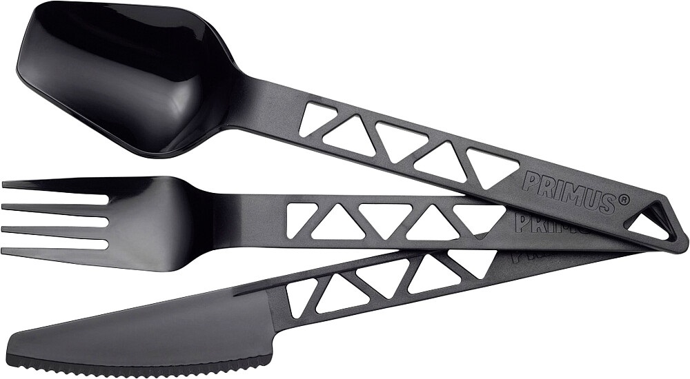Fourchettes, couteaux et cuillères en plastique Tritan®, sans BPA. Un véritable poids plume ! Avec sangles de maintien pratiques.