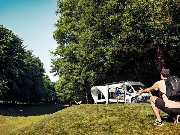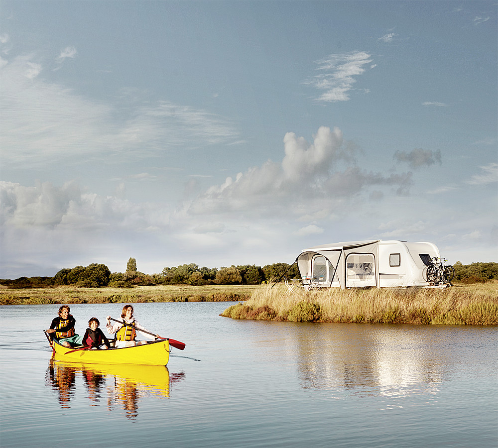 Un auvent cintré intégré avec des tiges en fibre de verre assure un look contemporain. Des points d’attache bien pensés facilitent l’assemblage. Aucun profil supplémentaire n’est nécessaire. L’assemblage est possible dans les 15 minutes. Un tissu ripstop résistant à la déchirure et extrêmement imperméable a été utilisé. La tente complète convient à presque tous les auvents de mur et de toit.