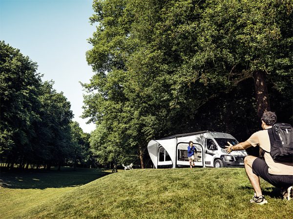Un auvent cintré intégré avec des tiges en fibre de verre assure un look contemporain. Des points d’attache bien pensés facilitent l’assemblage. Aucun profil supplémentaire n’est nécessaire. L’assemblage est possible dans les 15 minutes. Un tissu ripstop résistant à la déchirure et extrêmement imperméable a été utilisé. La tente complète convient à presque tous les auvents de mur et de toit.